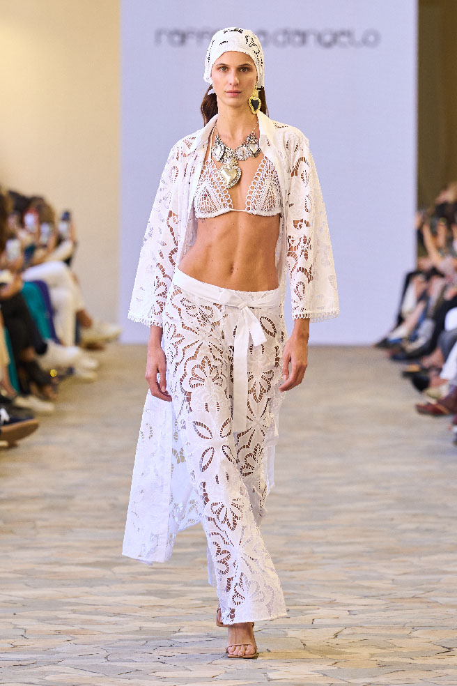 - Il Valore del Made in Italy: Un manifesto di autenticità e qualità, la collezione esalta l’immenso valore di una filiera interamente italiana. Ogni capo, dal filo al pizzo (reti, macramè, sangallo, seta e lino), nasce in Italia grazie al lavoro di mani esperte, promuovendo il “saper fare italiano” e la responsabilità verso le nuove generazioni.