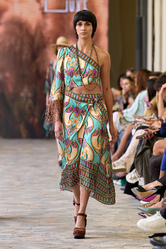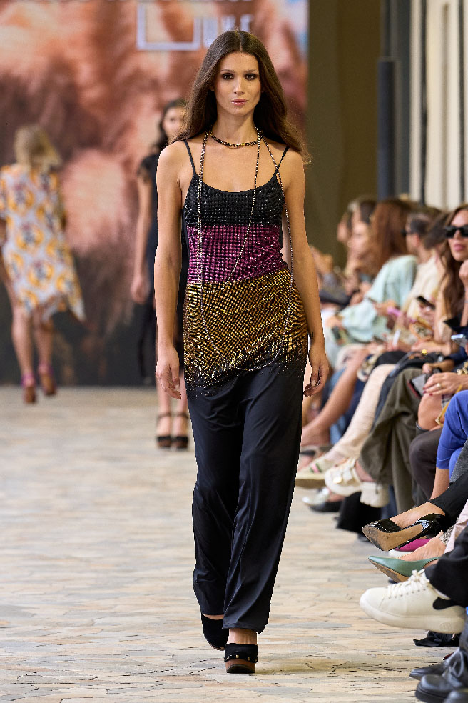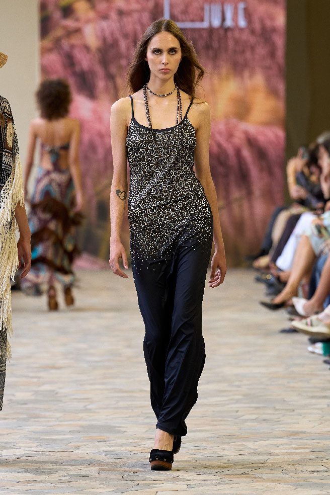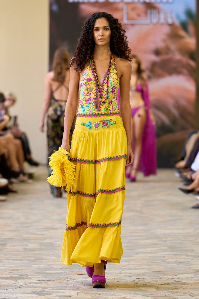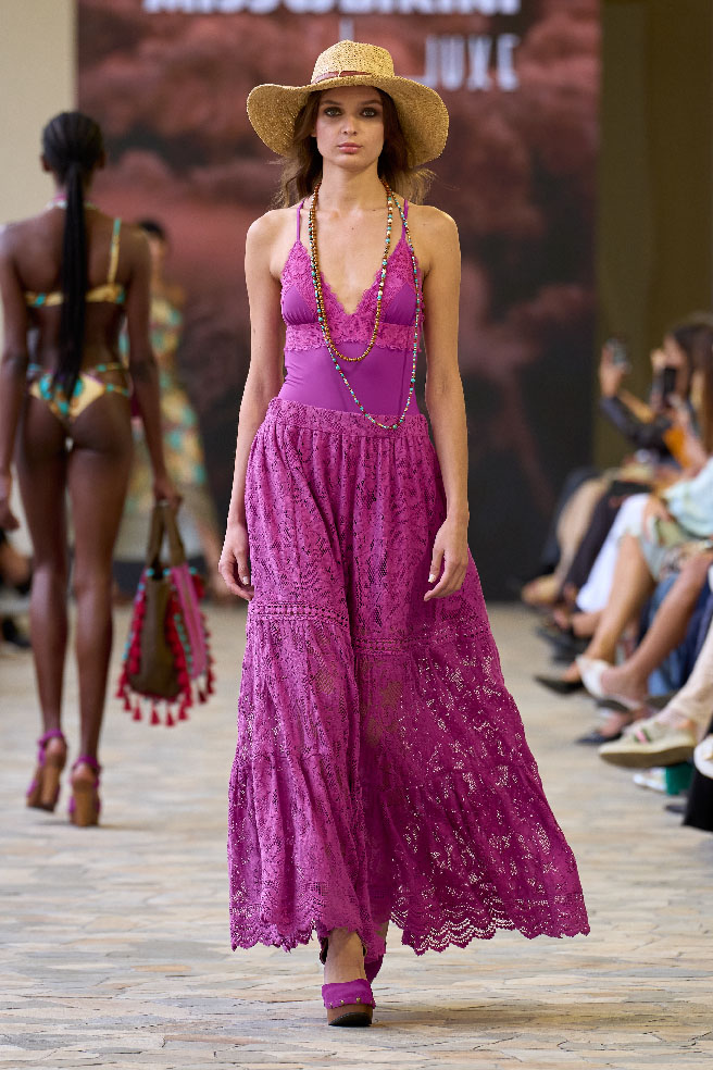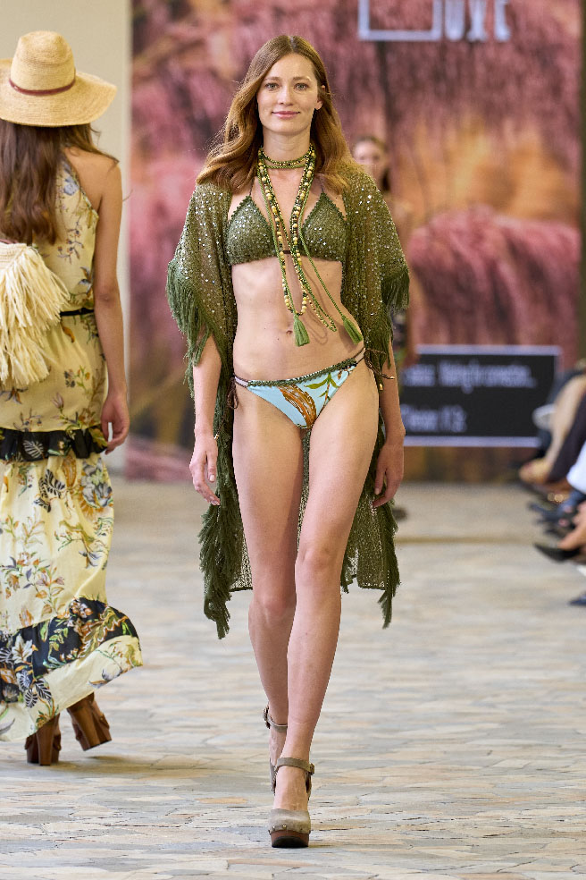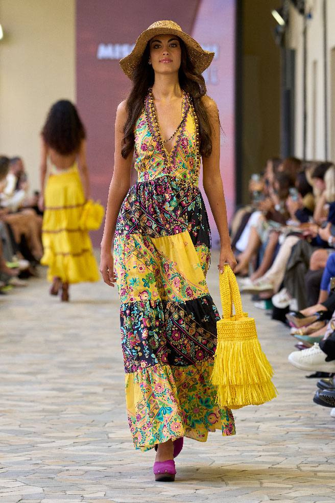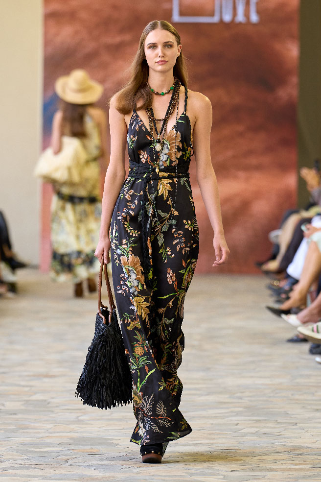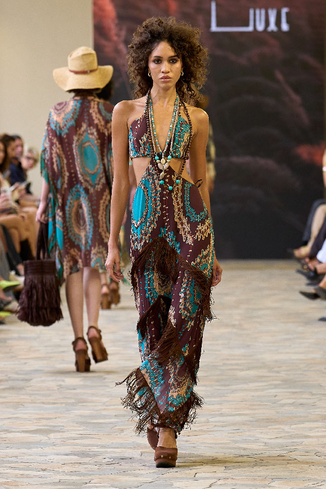 Lo stile è un sofisticato boho-chic che si traduce in una “beach couture” versatile e sartoriale. I capi, leggeri come soffi d’aria, spaziano da caftani gipsy e abiti lunghi fluidi, a bikini iconici e sofisticati.