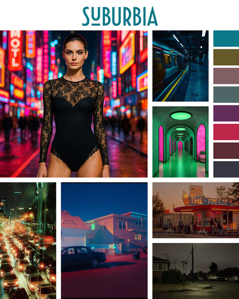 - Suburbia (Streetstyle & Avanguardia): La lingerie si mette in mostra. Corsetteria audace e pizzi tridimensionali si fondono con lo stile urbano, portando l’intimo nelle strade delle metropoli con un linguaggio contemporaneo e mai volgare.